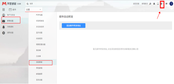 3、登錄WEB端讓檢查郵箱是否有設(shè)置自動(dòng)轉(zhuǎn)發(fā)。(一般都是空的,除非自己有設(shè)置,如果不是自己設(shè)置的就要注意了)