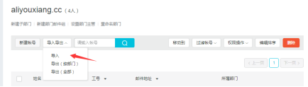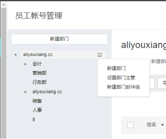 選擇對(duì)應(yīng)的上級(jí)目錄下,點(diǎn)擊新建部門(頂級(jí)部門都為郵箱的域名,無(wú)法修改或刪除)