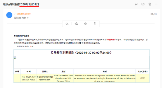 注意:開啟該郵件提醒功能后,垃圾箱的郵件不再永久保存,15天后自動(dòng)刪除。